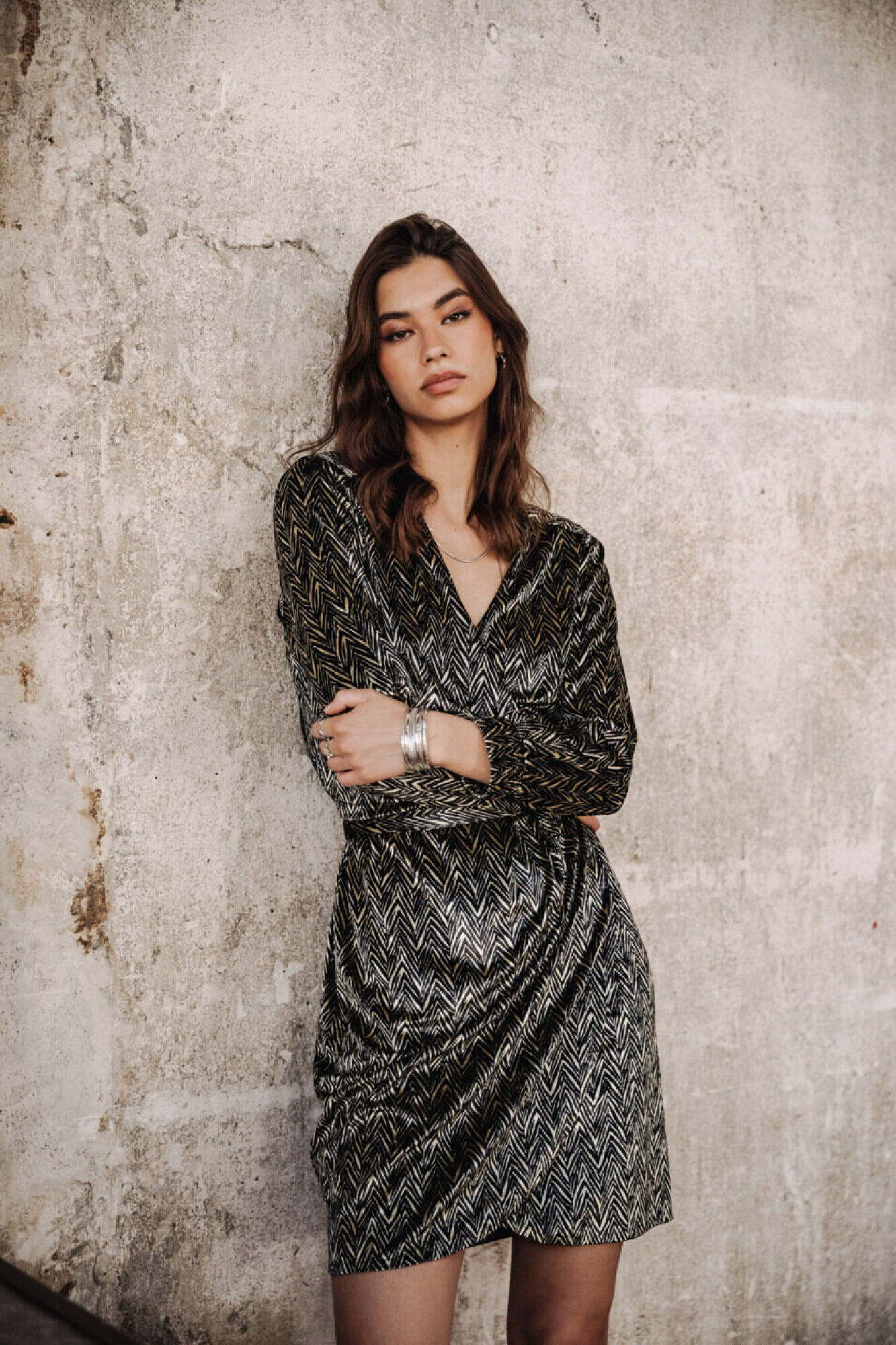 Adoptez un style chic et moderne avec la robe portefeuille courte Regate Night. Son haut croisé, son bas de jupe asymétrique et ses manches 3/4 avec poignet de chemise en font un incontournable pour une allure raffinée et élégante en toute occasion.